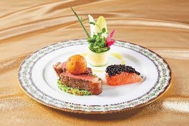 アンガス・エイジングステーキ& スコティッシュサーモンのミ・キュイ